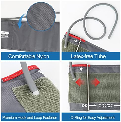 Durable Comfortable Material: Constructed of high-molecular polymer 210 denier nylon fabric, and high-density hypoallergenic TPU airbag, non-toxic and tasteless. High-strength, abrasion-resistant, easy to clean, and latex free material (Not made with natural latex rubber). Premium hook and loop fastener is convenient and quick to wrap your arm comfortably for the long-term use.