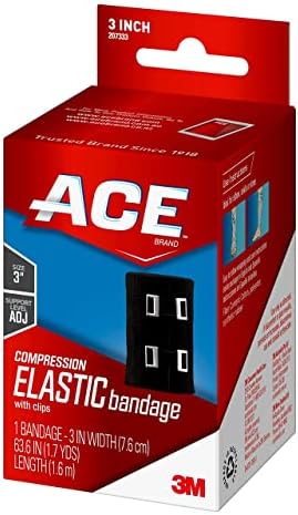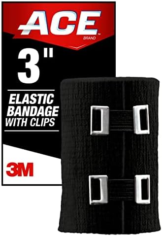 ACE 3 Inch Elastic Bandage with with Clips, Black, Great for Elbow, Ankle, Knee and More, 1 Count