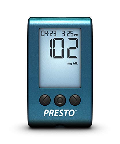 Easy, accurate blood glucose monitoring made affordable. With the Presto Blood Glucose Meter, you’ll receive accurate results in an average of 6 seconds. Results are viewable day or night with a large, backlit display. Track your glucose control with on-screen averages, or be alerted when results are out of target blood glucose range with custom Hypo and Hyperglycemic alarms.