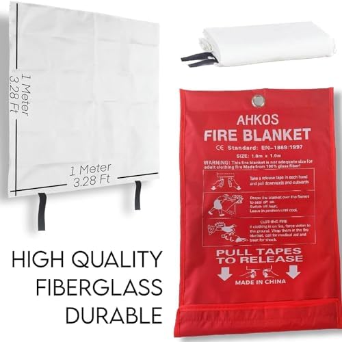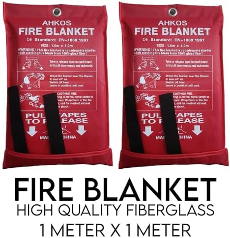 AHKOS Fire Blanket for Kitchen and Home, Fiberglass Fire Safety Blankets for Survival, Flame Retardant Protection for Kitchen, car, Workhouse 39 x 39 inc – 2 Packs with Gloves