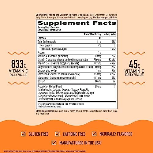 Airborne Original Gummies provide immune support in a great-tasting and easy-to-take form. Each serving (3) gummies delivers 750 mg of Vitamin C, is high in antioxidants (Vitamins C & E) and is an excellent source of Selenium. It also contains a proprietary herbal blend with Echinacea & Ginger. Airborne Original Gummies help support your immune system.* Airborne is the #1 Immune Support Gummy, Effervescent & Chewable Brand.¹ *These Statements have not been evaluated by the Food and Drug Administration. This product is not intended to diagnose, treat, cure or prevent any disease. ¹Based on unit sales L52W through 4/3/2021.