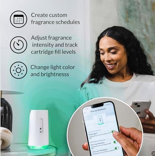 Effortless Control ; Just Right Freshness: Personalize your home’s ambiance with adjustable fragrance intensity levels (1-10), set scent schedules and control the LED Light at the bottom of each AIRIA Device, all from the ease of your smartphone.