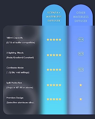 Airversa Waterless Diffuser for Essential Oil Nebulizer 100ml Capacity Battery Operated Aromatherapy Mini Scent Air Machine Atomizing Diffuser 1/2/3H/Continous 3 Mist Level 7 Lighting Effects