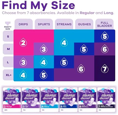 Looking for incredibly strong bladder leak protection that’s barely noticeable under clothes? Experience incredible bladder leak and postpartum protection in a surprisingly thin and discreet incontinence pad. Always Discreet Incontinence Pads for women provide the comfort you need with up to the 100% leak-free protection you deserve. Thanks to a unique absorbent core that keeps your skin dry by absorbing bladder leaks in seconds, you’ll be able to stay comfortable and feel fresh for hours. Walk with poise and confidence knowing two RapidDry layers form a boosted protection zone in the center of the pad that holds up to 5x the average leak, giving you extra bladder control protection where you need it most. The LeakGuards help keep wetness away from the sides and prevent run-offs at the edges where unexpected leaks tend to occur, while the lightly scented OdorLock technology neutralizes odors instantly and continuously. Don’t let bladder leaks get in the way of your day. Simply find your right size with the Always Discreet My Fit chart and get the bladder control pads for women with protection you can depend on. Incontinence liners, bladder leak pads for women, maxipads, and pantiliners are FSA and HSA eligible. Always Discreet Incontinence Pads are available in bulk for added convenience.
