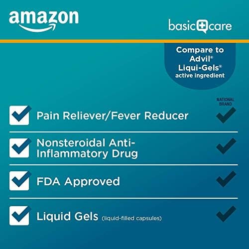 Amazon Basic Care Ibuprofen Liquid Gels 200 mg, Pain Reliever/Fever Reducer Liquid Filled Capsules, For Headache, Toothache, Backache, Menstrual Cramps and More, 160 Count
