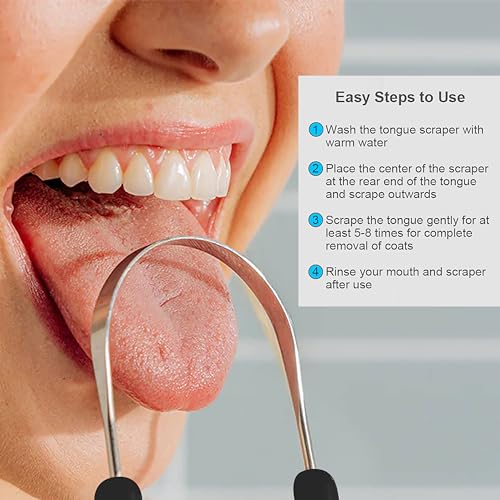 MEDICAL GRADE STAINLESS STEEL FOR LASTING DURABILITY: Made with 100% medically graded stainless steel, the U-shaped tongue scraper is durable and long lasting. Its rust-proof and stain resistant material helps you clean your tongue of debris and plaque gently giving you an improved sense of taste and oral well-being. Simply wash the tongue scraper after each use with warm water, or even throw it in your dishwasher and enjoy cleaner oral hygiene with utmost ease!