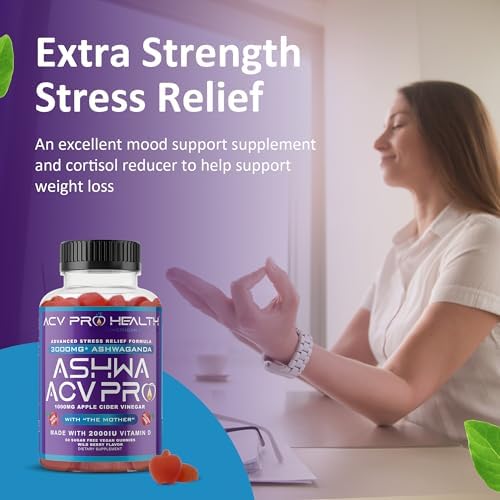 Extra Strength Stress Relief – Did you know that chronic stress can cause an increased body mass? Research shows that high stress hormone cortisol causes excess mass to be retained in the body. Science proves that to help trimming and toning you need to manage cortisol with adequate sleep. Our extra strength ashwagandha root extract keto+ACV with Vitamin D sugar free gummies are an excellent mood support supplement and cortisol reducer to assist in your healthy diet all day and all night!