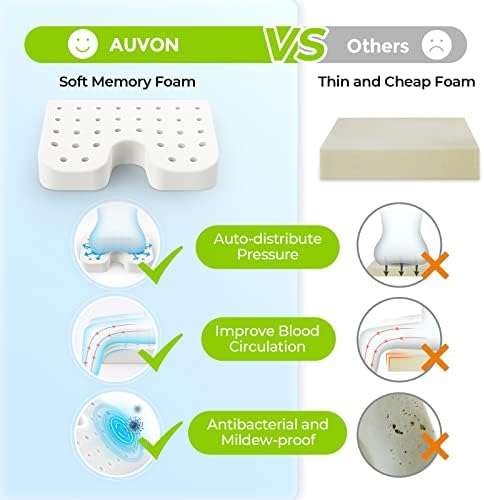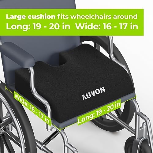 AUVON Wheelchair Seat Cushions (20"x16"x4") for Sciatica, Back, Coccyx, Pressure Sore and Ulcer Pain Relief, Memory Foam Pressure Relief Cushion with Removable Strap, Breathable & Waterproof Fabric