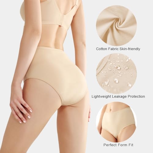 BATTEWA Incontinence Underwear for Women,Leak Proof Underwear Washable Absorbency Cotton Panties Bladder Leakage Protctive 50ML(Beige,X-Large,3-Pack)