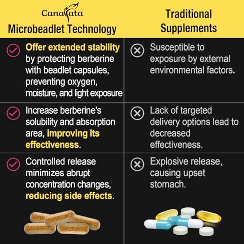 Innovative Microbeadlet Technology: This state-of-the-art microbeadlet technology offers an advantage over traditional supplements. lt enhances the efficacy of berberine hcl and is gentle on the stomach. The lipid coating of our microbeadlets shields the berberine content from oxygen and moisture, extending the shelf life and improving the stability of berberine hcl, maintaining maximum potency in each capsule and promoting effective delivery to the body’s cells.