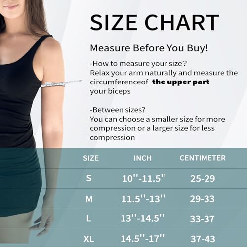 Enhanced Quality Material – Our upper arm sleeves are made of high-quality nylon and spandex, a soft and delicate fabric that perfectly conforms to your skin. With exceptional breathability, it keeps the skin dry and ensures all-day comfort without irritation
