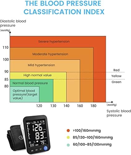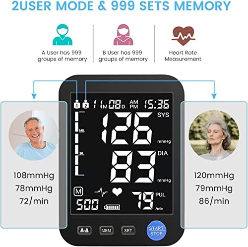 𝟐 𝐱 𝟗𝟗𝟗 𝐬𝐞𝐭𝐮𝐩 𝐦𝐞𝐦𝐨𝐫𝐲, 𝟐 𝐮𝐬𝐞𝐫: Our bp monitor has 2 x 999 setup memory that can store data for 2 users. Easily change users with one user button (2 user modes), great choice for tracking the health of parents or working parents. Heartbeat detection in each blood pressure measurement and display your hearing rate on the screen.