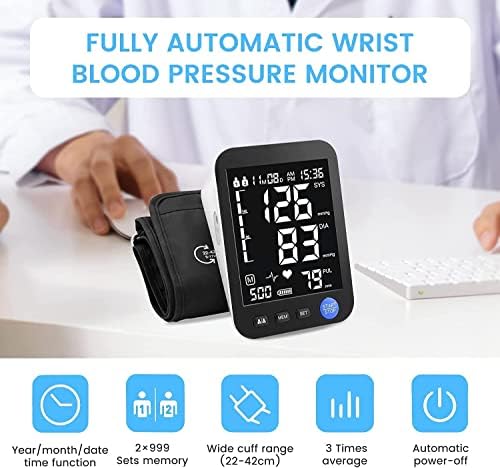 Blood Pressure Machine for Home Use, Automatic Blood Pressure Monitor with Extra Large Screen, Adjustable BP Cuff Arm Kits 2 * 999 Memories 4 Batteries Includes Charging Cord (Black)