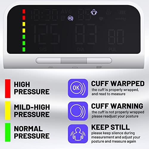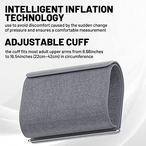 Comfortable & Adjustable Arm Cuff — Compatibility design. Our BP Monitor eqquipped with adjustable D-ring to improve accuracy, is suitable for adult arm 8.7-16.5 inches (22-42cm) in circumference.