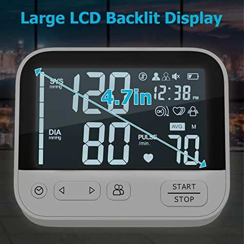 Large LCD Display: Our Blood Pressure Cuff Arm custom large Backlit LCD Display – 4.7 inches, gives you a great visual experience and you can view your results more clearly. Large fonts and HD Backlit Display provide clear reading at nighttime