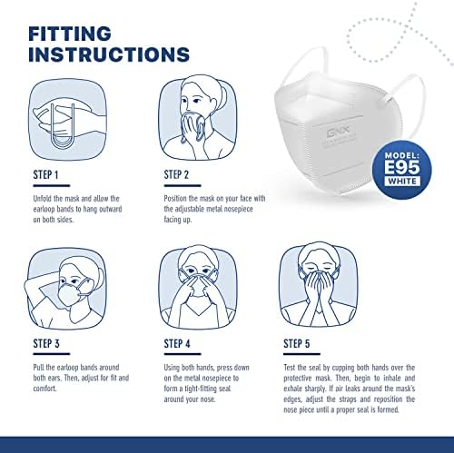 [Latex Free Ultimate Comfort and Fit] Features latex free and amazingly soft and durable ear-loop bands as well as an adjustable metal nose piece to ensure a tight yet comfortable seal. Please follow all recommended fitting instructions and guidelines to ensure proper fit and protective seal. Flat fold design allows for convenient storage prior to use. Improved 3D design provides room for your mouth to move when you speak and reduced fog on glasses.