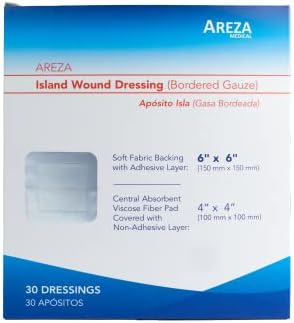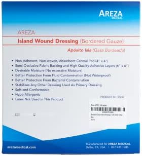 Bordered Gauze Island Dressing 6″ x 6″ Sterile Latex Free 30 Per Box; Wound Dressing by Areza Medical
