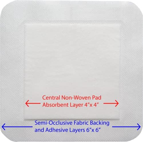 6″ x 6″ (15 cm x 15 cm) (adhesive) ,4″x4″ (central pad); 30 in each box, 30/Box