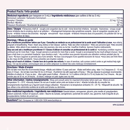 COUGH SYRUP: Buckley’s Original Mixture Syrup provides fast and effective relief from coughs and congestion due to colds as well as minor bronchial irritations, laryngitis, hoarseness, and croupy cough