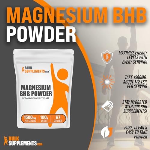 BulkSupplements.com Magnesium BHB Powder – Beta-HydroxyButyrate Powder, BHB Supplement – BHB Salts, Electrolytes Supplement, Pack of 1 – Pure & Unflavored, 1500mg per Serving, 100g (3.5 oz)