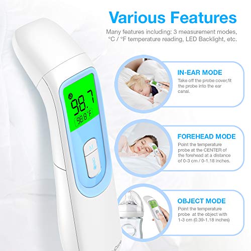 Infrared Technology – State-of-the-art infrared technology enables users with no physical contact and accurately measure temperature from forehead. Rest assured infrared is quick, responsive, and highly precise. Measurement accuracy ranges from only ±0.4 °F (±0.2 °C).