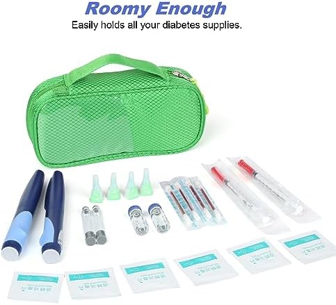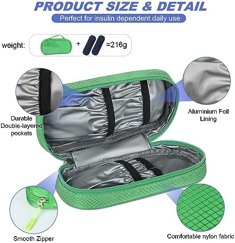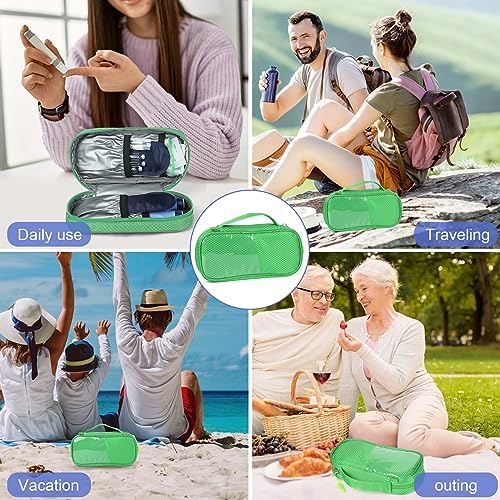 CDBXPRG Insulin Cooler Travel Case for Diabetic Insulated Carrying Cooling Organize Bag with 2 Ice Packs for Insulin Pen and Other Diabetic Medication Supplies Green