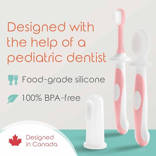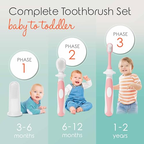 Cherish Baby Care Award-Winning Baby Toothbrush Set (3-24 Months) – Baby Finger Toothbrush, Training Toothbrush & Toddler Toothbrush – BPA-Free Infant Toothbrush Set, Baby First Toothbrush Set (Pink)
