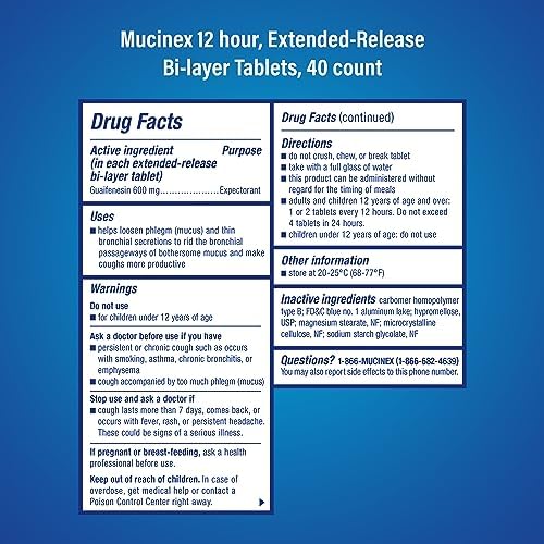 Chest Congestion, Mucinex 12 Hour Extended Release Tablets, 40ct, 600 mg Guaifenesin Relieves Chest Congestion Caused by Excess Mucus, #1 Doctor Recommended OTC expectorant