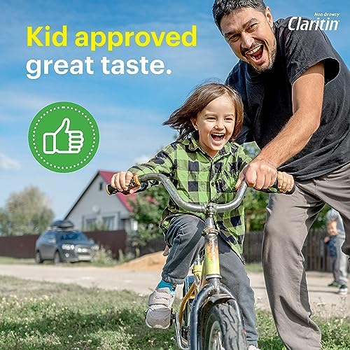 Children’s Claritin 24 Hour Allergy Relief Non Drowsy Kids Allergy Medicine, is a grape-flavored antihistamine liquid allergy medicine that provides powerful childrens allergy relief. This kids allergy relief liquid contains loratidine liquid, a non-drowsy antihistamine that helps alleviate symptoms such as sneezing, runny nose, itchy and watery eyes, and itchy throat or nose due to hay fever or other respiratory allergies. Unlike other children’s allergy relief liquid that may make children drowsy, Childrens Claritin 24 Hour Allergy Relief Non Drowsy Kids Allergy Medicine is specially formulated to be non-drowsy, making it perfect for use during the day or at night.