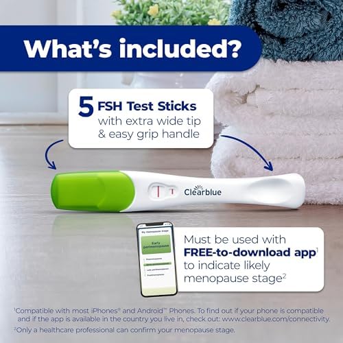 WHAT’S INSIDE: The Clearblue Menopause Stage Indicator includes 5 Follicle Stimulating Hormone (FSH) test sticks for women. Use with FREE-to-download ‘Menopause Stage – Clearblue me’ app to find out your likely menopause stage! [1,2]