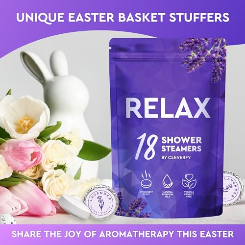 Cleverfy Shower Steamers Aromatherapy – 18 Pack of Lavender Shower Bombs with Essential Oils. Self Care Easter Basket Stuffers for Teens and Adults.