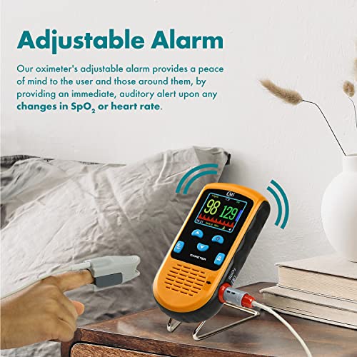 CMI Health Rechargeable Pulse Oximeter – Adult Finger Sensor for Continuous Monitoring & Spot-Checking – Adjustable Alarm for Pulse Rate and SpO2 Levels – Carry Case, AC Adapter Included