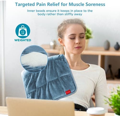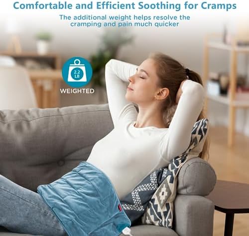 Comfytemp Full Weighted Heating Pad for Back Pain & Cramps Relief, 2.2lb Electric Heating Pad for Neck and Shoulders, Moist & Dry Heat Therapy with Auto Shut Off, Stay On, 12×24″, Washable, Baby Blue