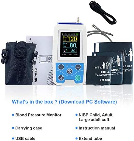 CONTEC ABPM50 Handheld 24hours Ambulatory Blood Pressure Monitor with PC Software for Continuous Monitoring NIBP USB Port with Three Cuffs