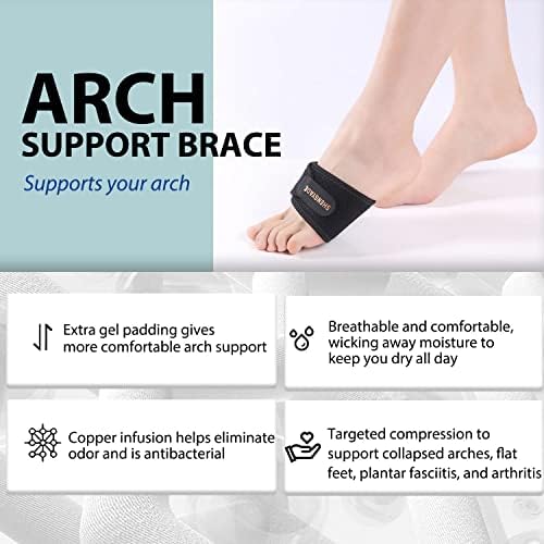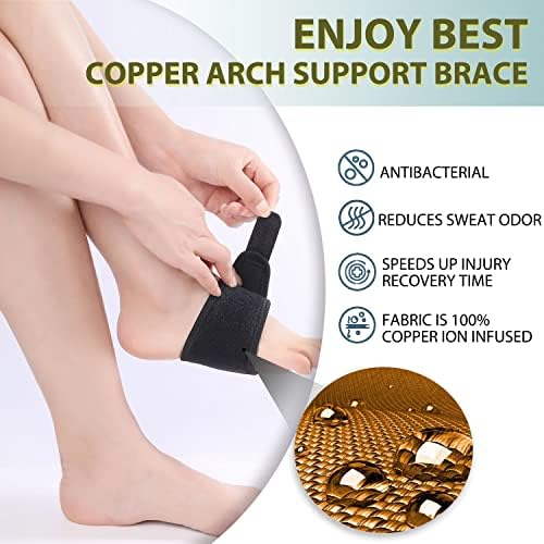 Copper Compression Arch Support – 2 Plantar Fasciitis Adjustable Velcro Arch Brace for Men Women, Effective Foot, and Heel Care Sleeves Helps Flat & Fallen Arches, High Arch, Flat Feet, Regular Size Fits All (Upgraded style)