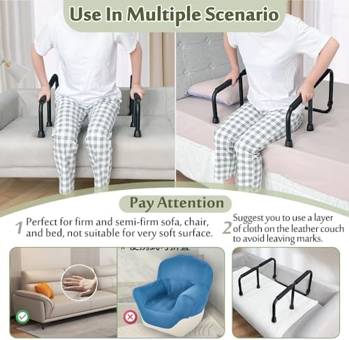 🚀【Easy Installation】Tool-free design allows the chair/bed assist handle can be assembled in a few mins and put into use quickly. NOTE: ➊Minimum size 19.7 by 16.9 inch, please check the couch size before buying. ➋Not used for furniture with too soft surface such as inflatable sofa or mattess, water beds, etc.