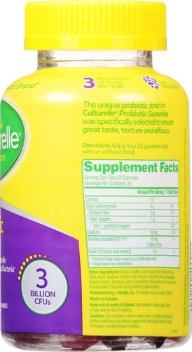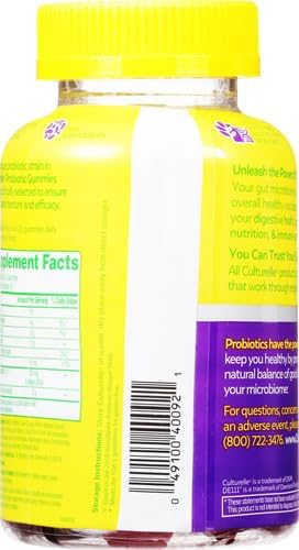 Culturelle Daily probiotic Gummies balance your gut naturally with the power of good bacteria. The probiotic strain in Culturelle Daily probiotic Gummies was specifically selected to ensure great taste, Texture and efficacy. Probiotics have the power to help keep you healthy by promoting a natural balance of good bacteria in your micro bio Me. Culturelle Daily probiotic Gummies contain three (3) billion CFUs of good bacteria with high survivability. Culturelle Daily probiotic Gummies are great-tasting and convenient to take. Enjoy two (2) gummies daily at any time of day. Trust your gut to Culturelle! Disclaimers: these statements have not been evaluated by the Food and Drug Administration. This product is not intended to diagnose, treat, cure or prevent any disease. ▲Meets the FDA’s guidelines for gluten-free. ^While there are no dairy-derived ingredients in the product, It is produced in a facility that also handles dairy ingredients. Φbased on the 2018 brandspark American shopper study. ▲Meets the FDA’s guidelines for gluten-free. *THESE STATEMENTS HAVE NOT BEEN EVALUATED BY THE FOOD AND DRUG ADMINISTRATION. THIS PRODUCT IS NOT INTENDED TO DIAGNOSE, TREAT, CURE OR PREVENT ANY DISEASE.