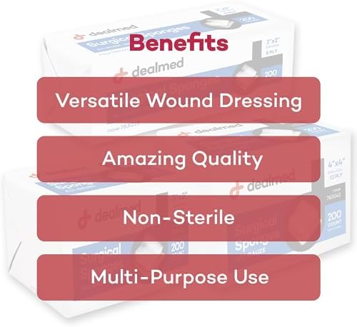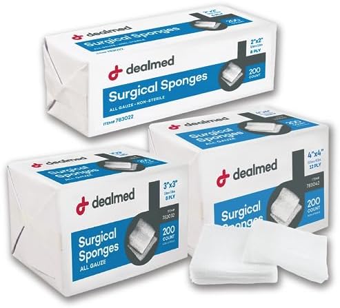 Dealmed 4″ x 4″ Surgical Sponges, 8-Ply, Non-Woven Absorbent Gauze Sponges for Wound Care, First Aid Kits and Medical Facilities, 200 Count (Pack of 1)