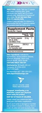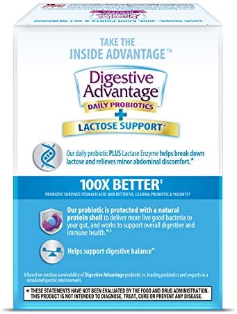 TRUSTWORTHY INGREDIENTS: These probiotic + lactose support capsules are GMO-Free, Dairy-Free & Vegetarian. Digestive Advantage products are guaranteed for freshness, purity, and labeled potency. 96 Day Supply!