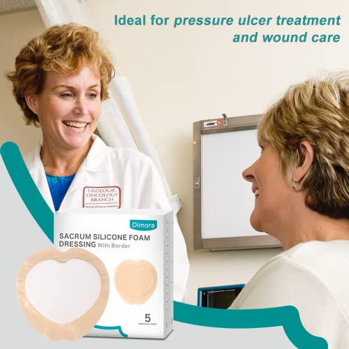 Dimora Wound Dressing Sacrum Foam Bandages Silicone Adhesive Border 7″x7″ Waterproof Sacral Pads Absorbent Breathable Bed Sore Pressure Dressing