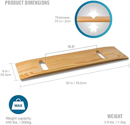 DMI Transfer Board and Slide Board, FSA Eligible, Made of Heavy-Duty Wood for Patient, Senior and Handicap Move Assist and Slide Transfers, Holds up to 440 Pounds, 2 Cut out Handles, 30 x 8 x 1