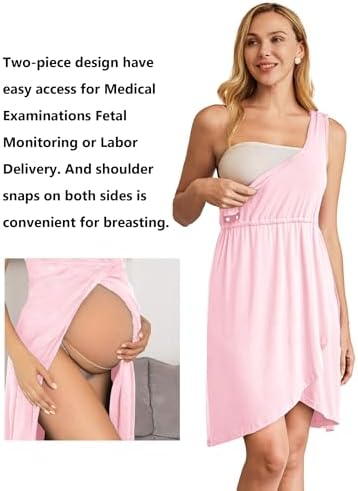 Ekouaer Nursing Nightgown 3 in 1 Sleeveless Maternity Labor Delivery Gown Hospital Nursing Dress Breastfeeding
