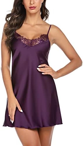 Ekouaer Sleepwear Sexy Lingerie Nightgown Lace Chemise Satin Slip Silk Negligee Nightie Bridal Babydoll for Women