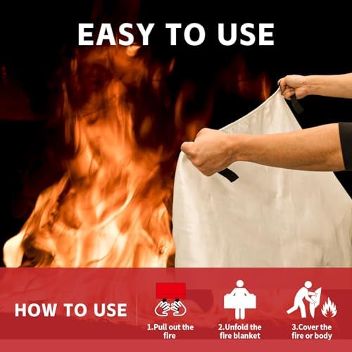 Emergency Fire Blanket, Fireglass Fire Suppression Blanket Fire Safety Blanket for Kitchen Fireproof Blankets for Home Kitchen School Grill Car Office Warehouse 2 Pack