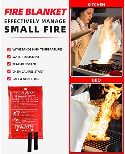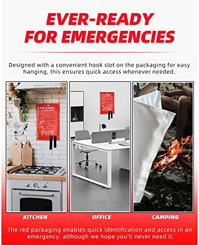HIGH-TEMPERATURE RESISTANT: This fire safety blanket is made of 430+ GSM 100% fiberglass flame retardant fabric and can resist temperatures up to 1076°F (580℃).It meets the safety standards set by CE and SGS, making it an essential component of any fire safety kit.