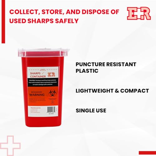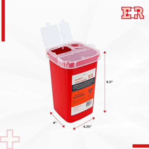 Ever Ready First Aid Sharps Container with Split Lid Design and Locking Mechanism for Sharp Waste Disposal, 1 Quart