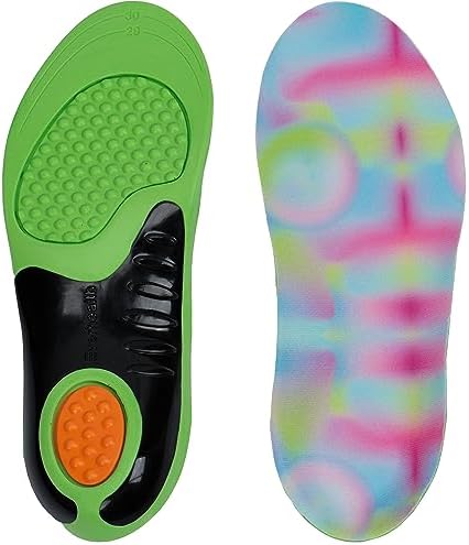 [LIGHTWEIGHT, BREATHABLE & SHOCK ABSORBING]: Our insole features a lightweight and flexible EVA material and breathable fabric, absorbing shock, reducing stress on feet, ankles, and knees providing ideal comfort while providing long-lasting performance. It helps to prevent common sports injuries such as Achilles tendonitis, shin splints, and knee pain also helps with exercise recovery.