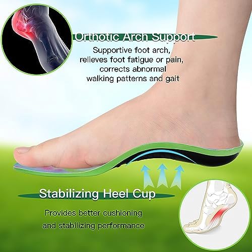 [ORTHOTIC ARCH SUPPORT]: This Children’s shoe insoles feature 3cm high and firm foot arch support for pressure relief on feet, ankles, and knees, the deep heel cup for the foot a firm hold and to provide optimal shock attenuation at heel strike. It relieves foot fatigue or pain caused by prolonged standing or walking, corrects abnormal walking patterns, relieves metatarsalgia, Achilles tendonitis, flat feet, overpronation, common foot pain, arch/heel pain & plantar fasciitis.