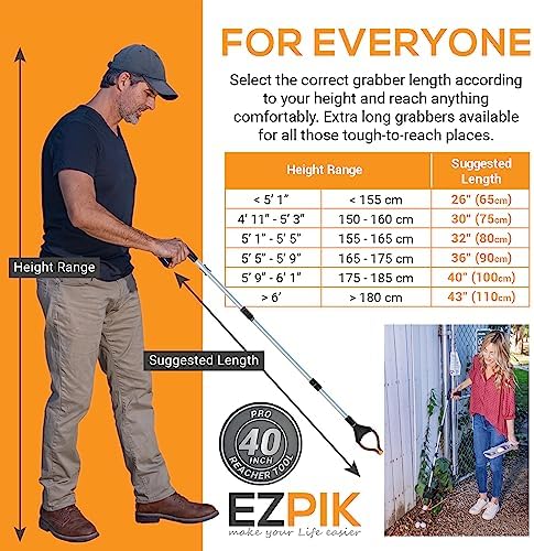 Ezpik 40″ Long Extended Grabber Reacher Tool for Elderly – Trash Hand Grabber Pickup Sticks for Seniors – Telescoping Extension Grabber Claw Pickup Tool – Hand Extension Magnetic Folding Grabber 2pack