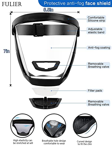 FULIER Transparent Face Mask Anti-Fog Outdoor Full Protection Face Shield HD Clear Mask Replace Safety Glasses (Black)